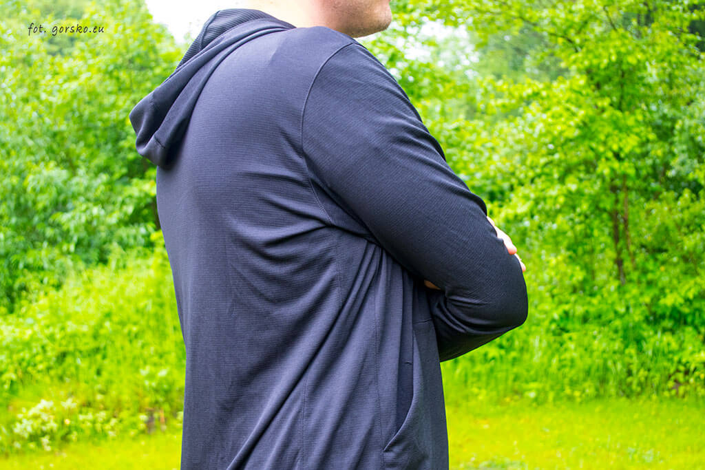 Bluza jest tak lekka, że prawie nie czuć, że mamy ją na sobie. Materiał jest miękki i przyjemny w kontakcie ze skórą, co w połączeniu z brakiem klasycznych bocznych szwów przekłada się na wysoki komfort noszenia.