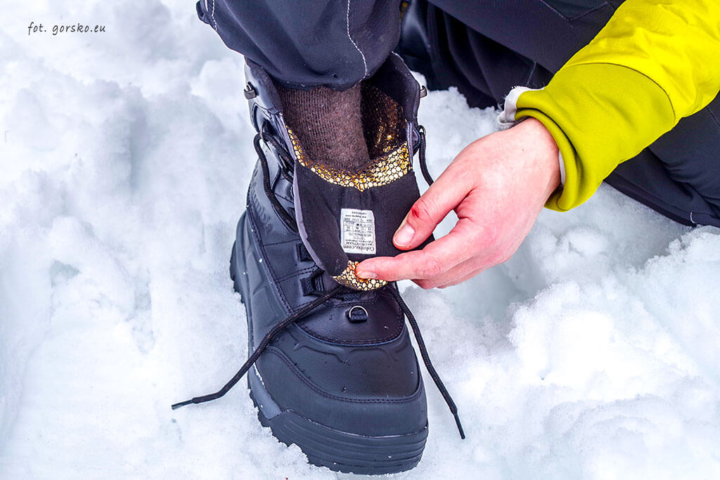 Kolejną ważną cechą śniegowców jest izolacja termiczna. Ilość ocieplenia warto dopasować do temperatur panujących w regionie, w którym masz zamiar używać butów. W Polsce raczej rzadko zdarzają się naprawdę duże mrozy. Sądzę więc, że w naszym regionie w zupełności wystarczające będzie 200 g ocieplenia. Taka ilość wypełniania jest w stanie izolować od zimna do temperatury około -20 °C.