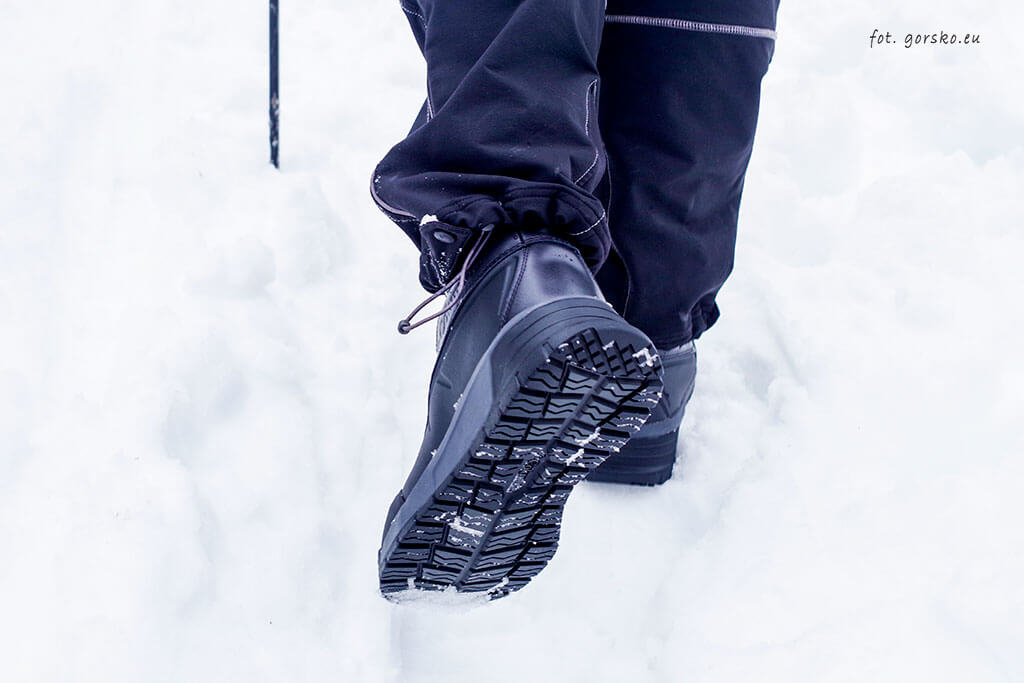 W trakcie testów celowo nie używałem przez większość czasu stuptutów, żeby sprawdzić, w jakim stopniu cholewka o tej wysokości połączona z nogawkami ze ściągaczem zabezpiecza przed śniegiem. Okazało się, że choć momentami wędrowałem w głębokim, kopnym śniegu, to ani razu śnieg nie nasypał mi się do butów od góry. Mimo to nadal jednak uważam, że zawsze warto zabierać stuptuty na zimowe wędrówki. Jeśli nie chcesz ich nosić cały czas, bo np. jest Ci w nich zbyt gorąco, to warto je mieć w plecaku na wypadek, gdybyś zauważył, że śnieg zaczyna wpadać Ci do butów.
