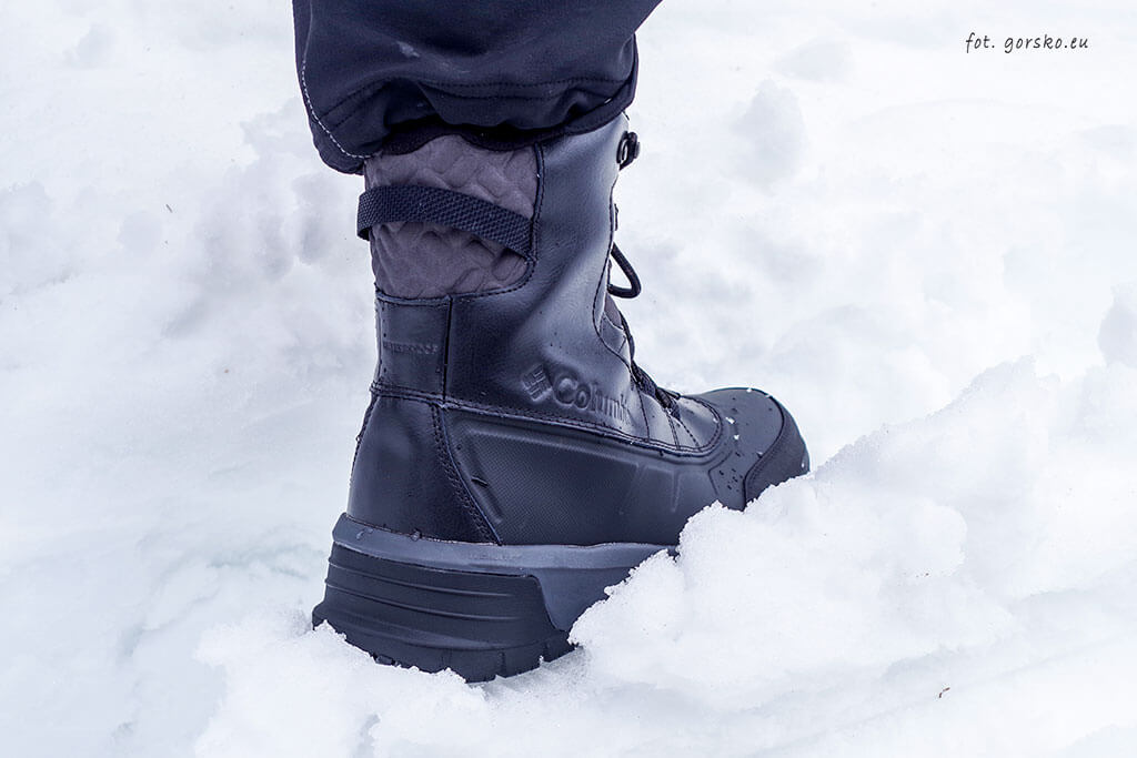 Buty na śnieg powinny mieć wysoką cholewkę. Dzięki temu ochronią stopy przed śniegiem i jednocześnie będą kompatybilne ze stuptutami. W przypadku modelu Columbia Bugaboot Celsius cholewka sięga aż do dolnej części łydki.