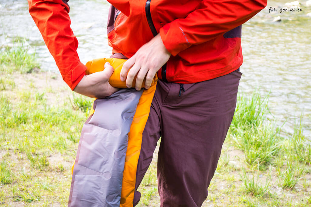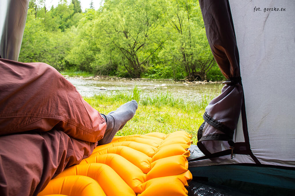 Która wartość R-Value lepiej obrazuje właściwości izolacyjne materaca Klymit Insulated Static V Lite? Czy można go używać wiosną, jesienią, a nawet zimą? Nigdy nie spałem pod namiotem tylko na materacu. Zawsze miałem ze sobą śpiwór. Od początku bardziej więc skłaniałem się do wartości 4,4. Aby jednak to potwierdzić, wziąłem materac w teren. Najniższa temperatura, w jakiej miałem okazję do tej pory spać to 5 °C. Nie odczuwałem w takich warunkach najmniejszego chłodu „ciągnącego” od podłoża.