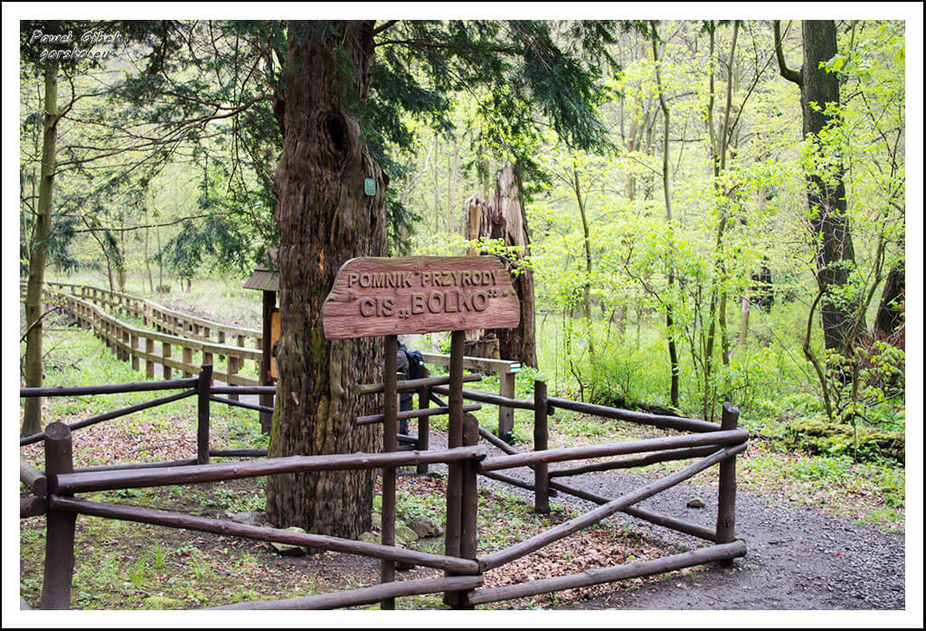 Wędrówkę szlakiem przyrodniczo-edukacyjnym „Ścieżka Hochbergów” rozpoczynamy przy zamku. Nie wchodzimy jednak do środka, tylko odbijamy na czerwony szlak. Schodzimy kawałek w dół i po chwili skręcając w lewo wchodzimy do wąwozu. Kierujemy się w dół czerwonym szlakiem, aż dotrzemy do pomnika przyrody cisu „Bolko”. Szacuje się, że wiek drzewa to od 400 do nawet 600 lat i jest największym cisem w Sudetach. Oprócz ciekawostki na szlaku, cis „Bolko” to dla nas również punkt orientacyjny. W tym miejscu skręcamy bowiem w lewo i kontynuujemy wycieczkę zielonym szlakiem. Drogę będą również wskazywać drogowskazy „Ścieżka Hochbergów”. Patrząc na lewo chwilami zobaczymy potężną sylwetkę Zamku Książ. Wędrując zwróćcie uwagę na tablice informacyjne, które zostały ustawione po drodze. Jedna z nich znajduje się przy Łabędzim Stawie. Już od dawna jeziorko jest wyschnięte, ale na środku zauważymy niewielką wysepkę. Kiedyś znajdował się na niej grób dzieci Hochbergów. Obecnie zostały już tylko kamienne płyty.