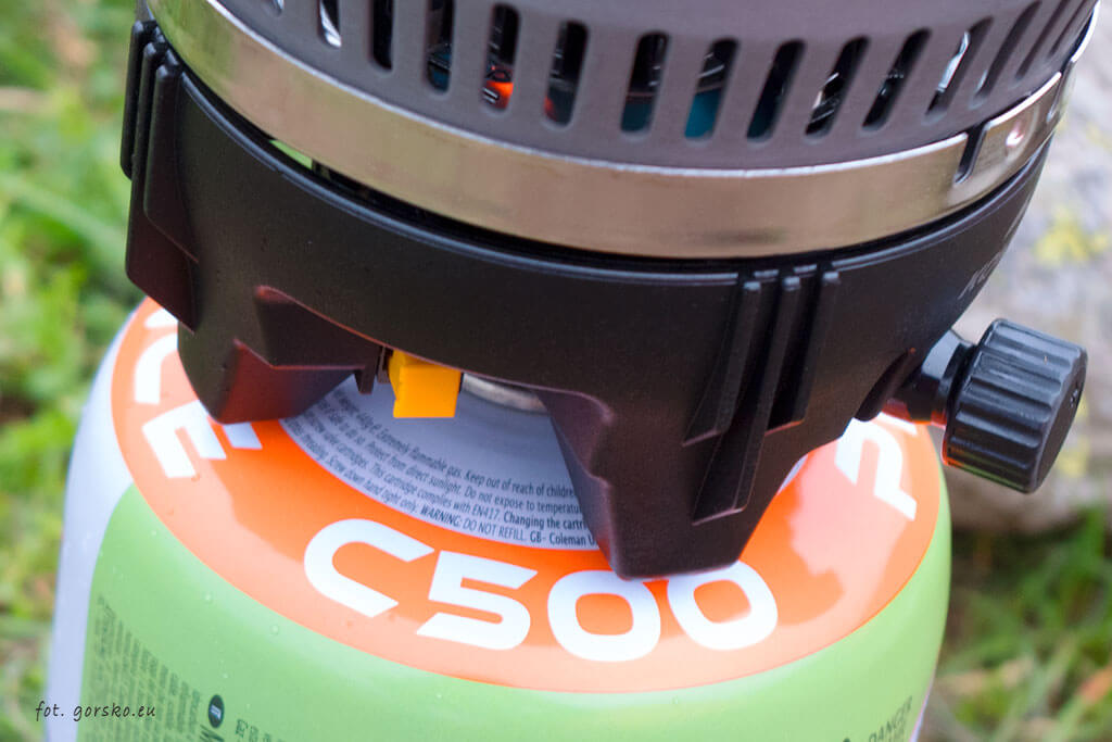 Palnik wyposażono w gwint typu EN417, co oznacza, że współpracuje on z najpopularniejszym standardem używanym w kartuszach. Ten rodzaj gazu bez problemu można kupić zarówno w Polsce, jak i za granicą. Wyjeżdżając na Kazbek kartusz można nabyć np. w biurze agencji Mountain Freaks, które mieści się w centrum Kazbegi.